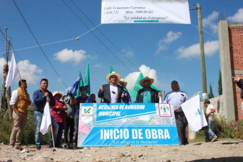 Pérez Rojas llego a la calle Venustiano Carranza a dar el 4to inicio de obra donde menciono a los ciudadanos vengo a cumplir mi palabra que di de pavimentarles su vialidad donde la meta a cubrir será de 3 mil metros cuadrados y lo aremos con una inversión de 1 millón 626 mil pesos, señalo.