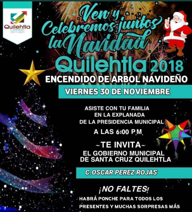 El mes de diciembre se convierte en un mes lleno de reflexión y humildad que harán que muchas personas recapacitemos en nuestros actos y llevemos las decisiones con responsabilidad, esta fecha es muy importante porque estamos a pocos días de comenzar con la época navideña en donde debemos de resaltar la importancia de la unidad familiar y la paz social, así lo dijo el alcalde de Quilehtla Oscar Pérez Rojas al dar a conocer que este 30 de noviembre se realizara el encendido del árbol de la navidad.