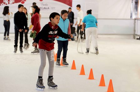 El Gobierno del Estado invita a las familias tlaxcaltecas a seguir disfrutando de la pista de patinaje en hielo que se encuentra instalada en la Plaza de la Constitución, como parte de las actividades de la temporada decembrina.