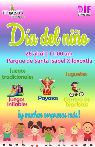 Con actividades que van desde carrera de bicicletas, juegos inflables hasta torneos de juegos tradicionales, el ayuntamiento de Xiloxoxtla que encabeza el alcalde Jaime Pérez Juárez, alista su cartelera de eventos para celebrar a los niños y niñas del municipio.