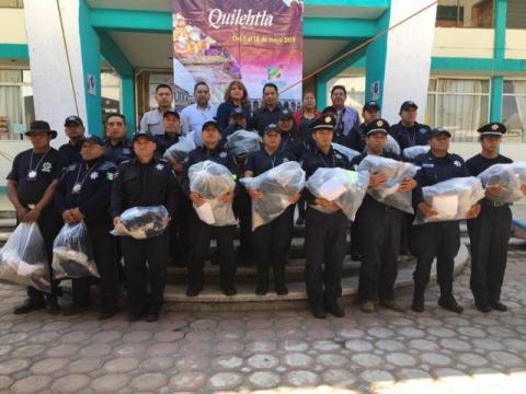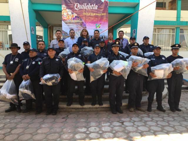 Con la finalidad de fortalecer la labor de los elementos de seguridad pública y vialidad del municipio de Quilehtla, el presidente municipal Oscar Pérez Rojas realizó la entrega de uniformes y equipo para los elementos, donde dijo estos uniformes dignifica a el área de seguridad, así mismo la población puede identificar de manera precisa a cada elemento de esta coorporación para tener una cercanía con su policía encargados de brindar seguridad.