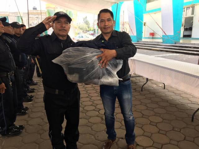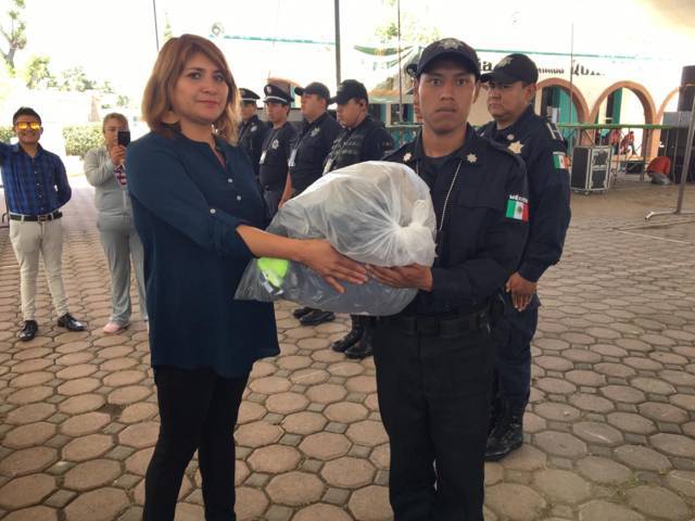El alcalde señaló los uniformes están integrados por: gorras, botas, camisolas, pantalones, playeras, chalecos, silbato y suéteres para los efectivos. De igual manera, se hizo entrega de radios, esposas, bastones retráctiles, lámparas, entre otros elementos para el desempeño de sus funciones.