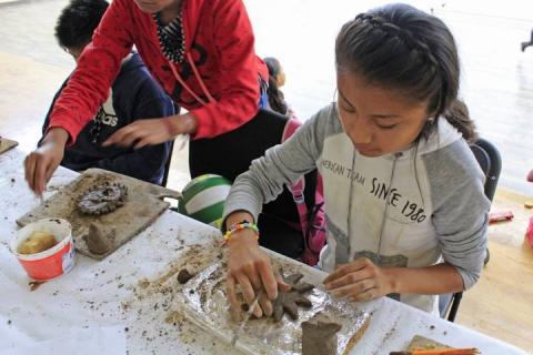 Durante la primera semana del curso, niñas y niños han aprendido modelado en barro sobre madera, dando forma a diversas figuras como soles y lunas, “Las próximas sesiones moldearán otro tipo de figuras como catrinas” señaló Cortés Juárez.