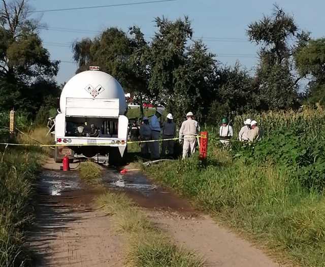 Por lo que, se implementó un operativo de resguardo y seguridad en la zona, así como recorridos pie tierra, a fin de localizar indicios en las inmediaciones, lo que dio como resultado la localización de un vehículo mercedes Benz tipo Freightliner modelo Pipa el cual se encontraba conectada a una toma clandestina de los ductos de gas.