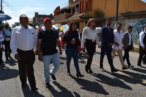 El alcalde acompañado de su cabildo y así como los empleados de esta administración, encabezaron la caminata y fueron acompañados de cientos de adultos mayores de las diferentes comunidades, dicha caminata inicio en el puente amarillo de la carretera vía corta-Zacatelco y concluyo en la explanada de la presidencia municipal.