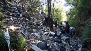 Con una convocatoria de cerca de 100 asistentes pertenecientes a la Dirección de Servicios Públicos Municipales, Protección Civil, CEBIS, Ecología; en punto de las 10 de la mañana dieron inicio a los trabajos de remoción de basura, que involucro el retiro de botellas de vidrio, plásticos de televisores, de coches así como textiles en grandes cantidades.