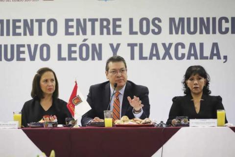 Ante la Presidenta Municipal de Tlaxcala, Anabell Ávalos Zempoalteca y su homóloga de Guadalupe, Nuevo León, María Cristina Díaz Salazar, el Gobernador Marco Mena destacó las características de dinamismo económico que registran ambos municipios, que la Administración Estatal busca mantener e incrementar, con la finalidad de consolidar a la entidad como una referencia a nivel nacional.