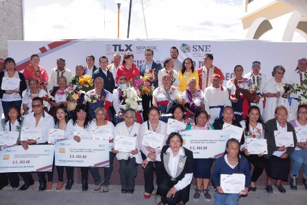 En la comunidad de Guadalupe Tlachco, del municipio de Santa Cruz Tlaxcala, Chávez Ruelas felicitó y reconoció el esfuerzo de artesanas y artesanos que participaron en el curso que se desarrolló a través del Sistema Nacional del Empleo (SNE).