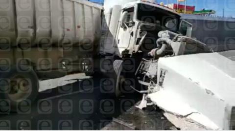 Fue un tráiler color blanco el que impactó a una camioneta Chrysler Town and Country color blanco, lo que causó daños materiales pero no hubo lesionados.
