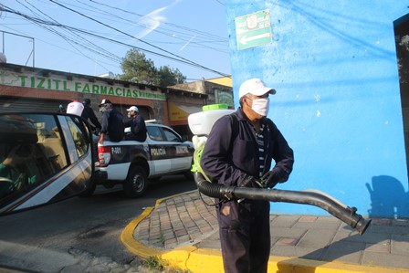 Comandados por el presidente municipal Miguel Ángel Sanabria Chávez, desde las 7 am se conformaron equipos de trabajo para sanitizar las calles denominadas Benito Juárez, Emilio Carranza, Vera y Zuria, San Rafael, Manuel Ávila Camacho, así como la calle del ferrocarril de Santa Cruz Tlaxcala.