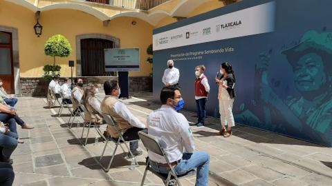 La Secretaria del Bienestar, María Luisa Albores González, y la Delegada de Programas de Desarrollo del Gobierno de México en el estado, Lorena Cuéllar Cisneros reconocieron en Tlaxcala los avances del programa “Sembrando Vida”.