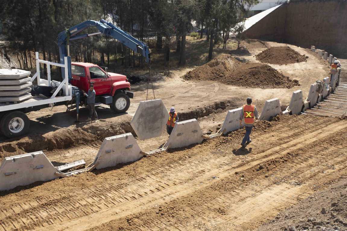 Como parte de los trabajos, actualmente se realiza la perforación de pilotes, colado de columnas y armado de cabezales para continuar con el montaje de trabes, de las 102 estructuras prefabricadas que en total se contempla colocar.