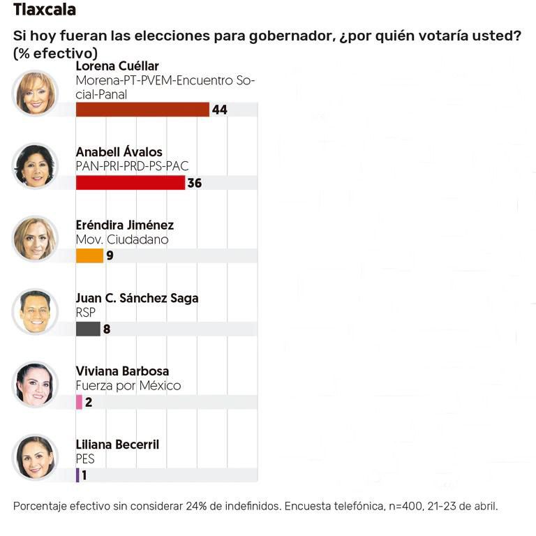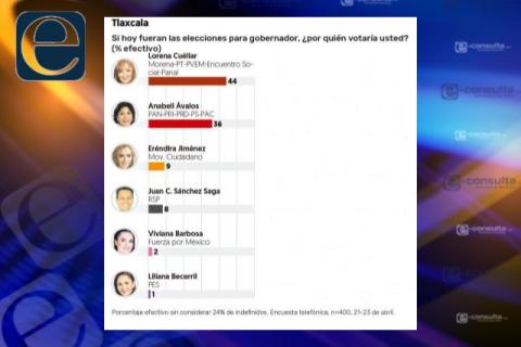 La diferencia entre las candidatas punteras a la gubernatura de Tlaxcala se cierra, debido a la caída en las preferencias electorales de Lorena Cuéllar Cisneros, candidata de la coalición “Juntos Haremos Historia”.