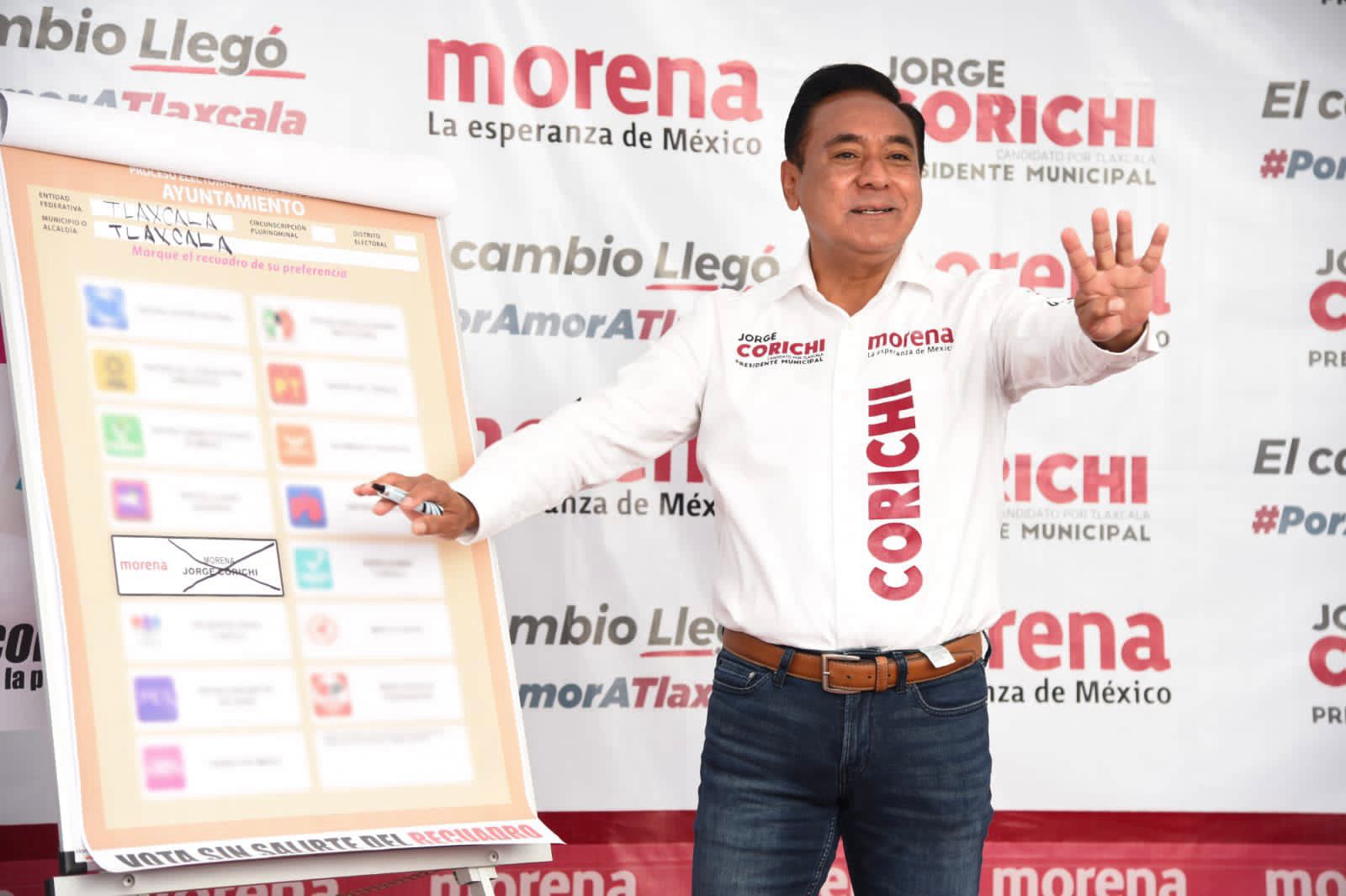 “El cambio no tiene reversa, el 6 de junio los tlaxcaltecas que vivimos con la esperanza de la transformación vamos a ganar con nuestro voto en línea por MORENA”, declaró el candidato de MORENA a presidente municipal, Jorge Corichi.