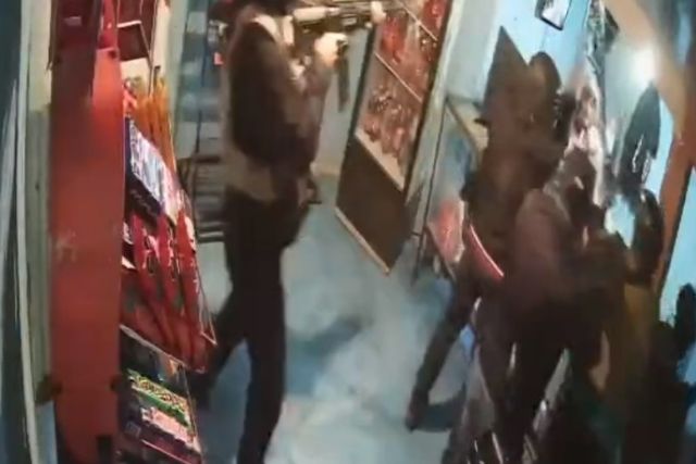 En la escena se observa a los sujetos llevarse al propietario de este local comercial.