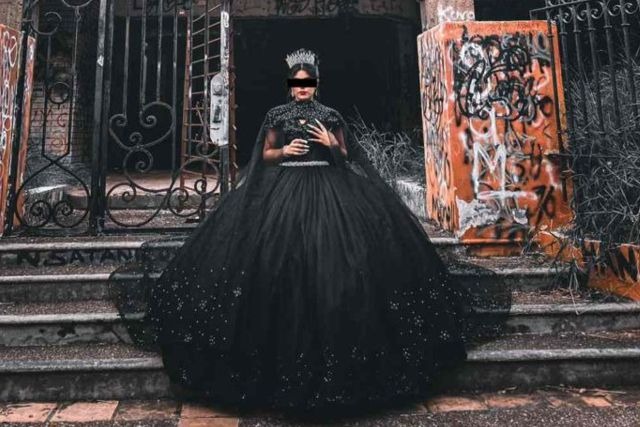 Una joven identificada como Yaretzi celebró su fiesta de 15 años fuera de todas las convenciones, pues portó un vestido negro y protagonizó una sesión de fotos en la “casa narcosatánica” de Matamoros.