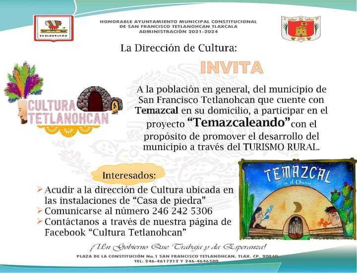 Tomando en cuenta que el temazcal es parte ayuntamiento de Tetlanohcan hace un llamado a la población a participar en el proyecto que busca darle continuidad, protección y utilidad turística regional.