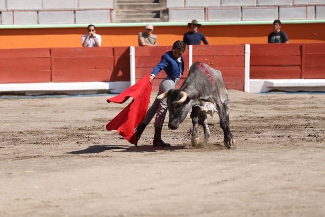 Luego de la presentación, el torero apizaquense lidió un novillo en la plaza Rodolfo Rodríguez "El Pana" de la ciudad ferrocarrilera, como parte de su preparación.