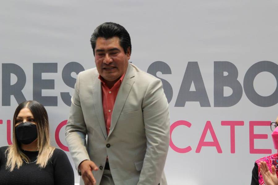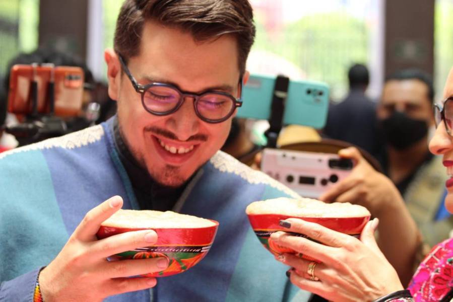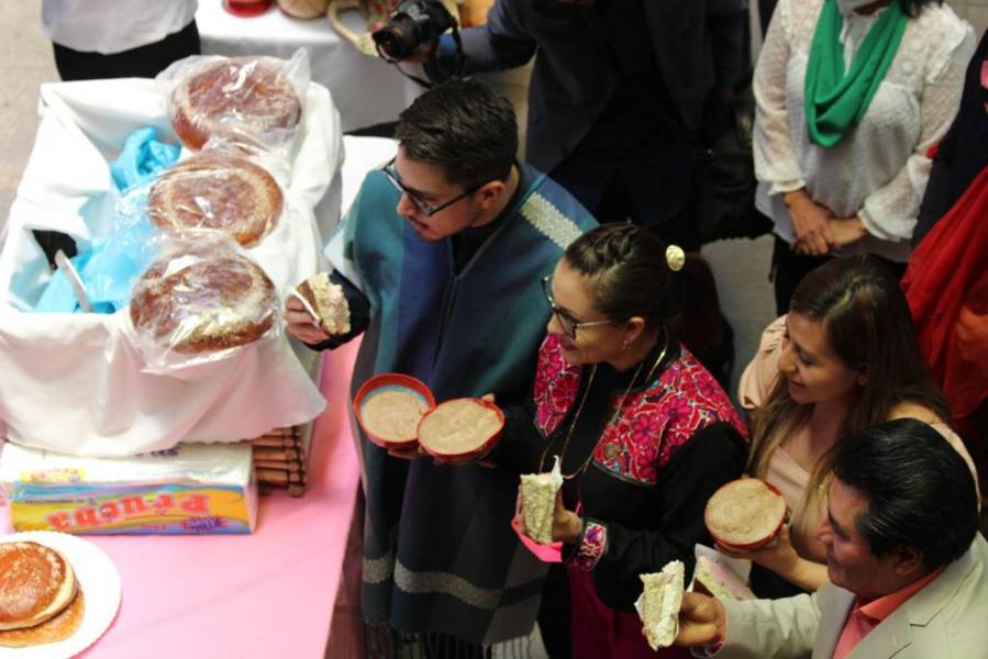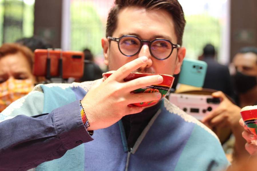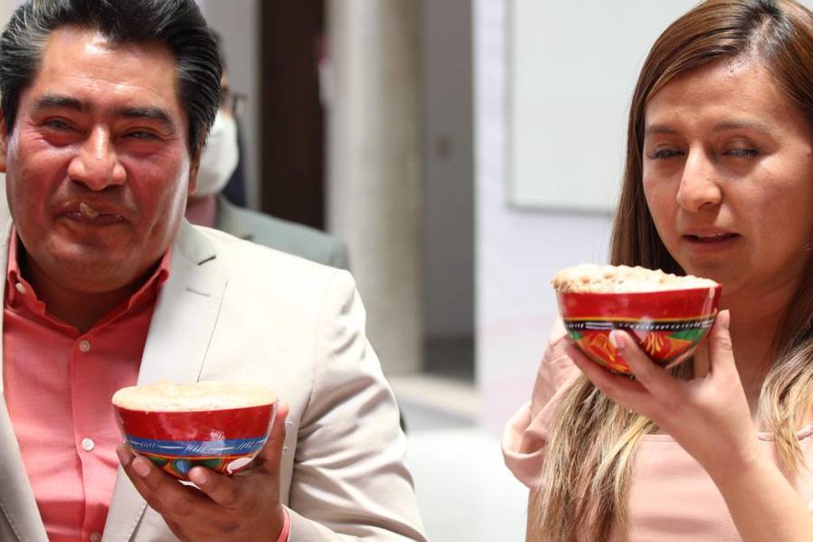 Tlaxcala,Tlax 24-05-2022 Hildeberto Pérez presidente del municipio de Zacatelco se presentó hoy en el patio Vitral del congreso para representar los sabores más característicos del municipio, como el pan de fiesta con helado o el famoso cacao, esto con el fin de fomentar los productos artesanales de las mipymes del estado de Tlaxcala.