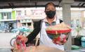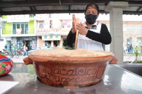 Zacatelco,Tlax,28/06/22-Doña Reyes Tizal Gutiérrez, de 49 años, de los cuales ha dedicado 35 años, a la venta y elaboración de cacao, ofrece su bebida tradicional del sur de Tlaxcala, a un costado del parque municipal de Zacatelco. Cabe señalar que los costos de esta bebida van desde los 20 hasta los 40 pesos por vaso.