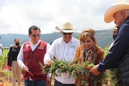 La gobernadora Lorena Cuéllar expresó su agradecimiento al Gobierno de México por la oportunidad que tiene el estado de formar parte del programa Sembrando Vida para fortalecer al campo tlaxcalteca.