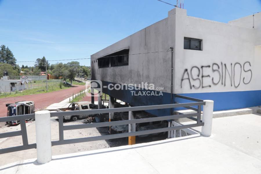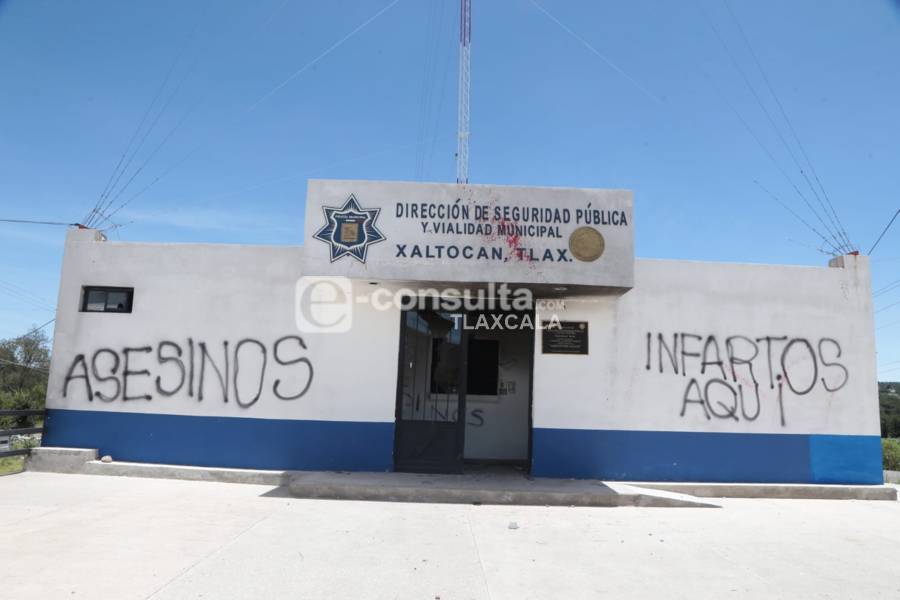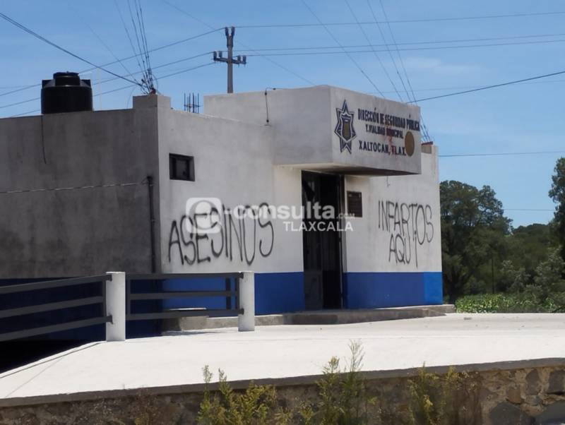 Xaltocan,Tlax,21/07/22.Tras la muerte de un hombre en los separos de la policía municipal de Xaltocan, el alcalde José Luis Hernández, dio a conocer que despidió a todos los elementos de la policía y coadyuva con las autoridades para esclarecer los hechos, por lo que la seguridad pública estará a cargo de la Policía Estatal hasta que se contrate a nuevos elementos. Además, durante un recorrido realizado este día, se observó el descontento de la población al seguir vandalizando el inmueble con leyendas como "infartos aquí" y "asesinos" ya que ningún vehículo ha sido removido del lugar que está abandonado.