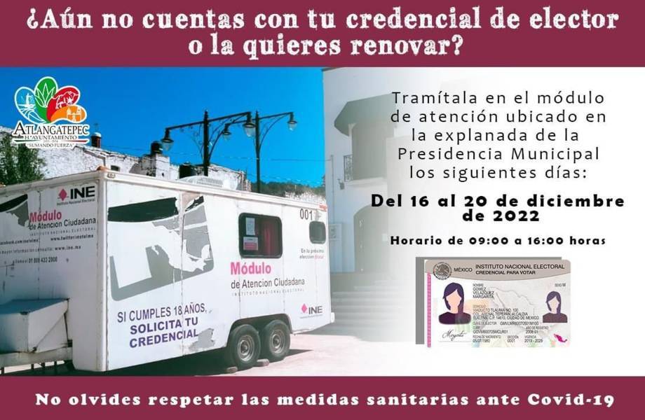 El Módulo de Atención del INE se encontrará en la explanada de la Presidencia Municipal de Atlangatepec.