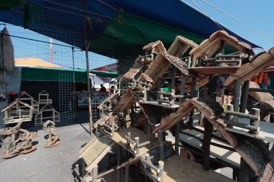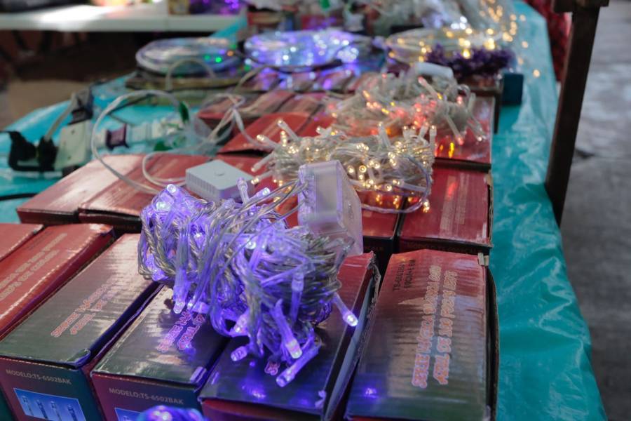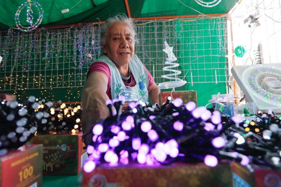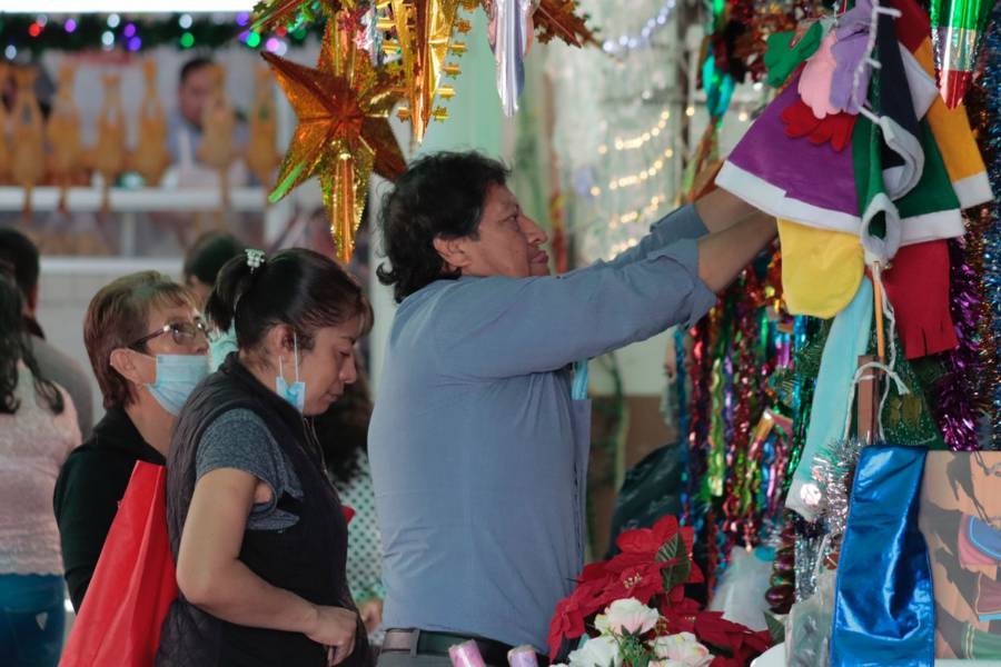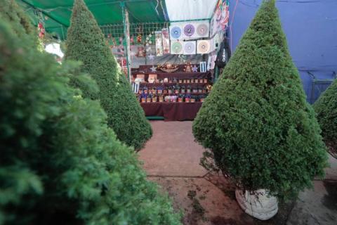 Tlaxcala, Tlax.-15-Diciembre-2022- Como cada año en el mes de diciembre, comerciantes instalan el mercadito navideño a las afueras del Mercado municipal Emilio Sánchez Piedras, donde ponen a la venta artículos para nacimientos, esferas, series de luces y árboles naturales y artificiales.