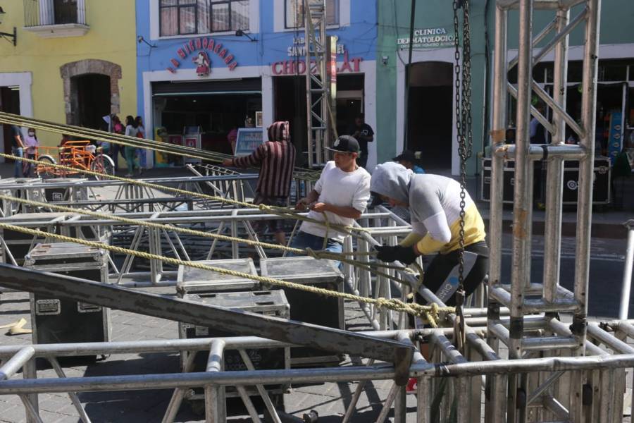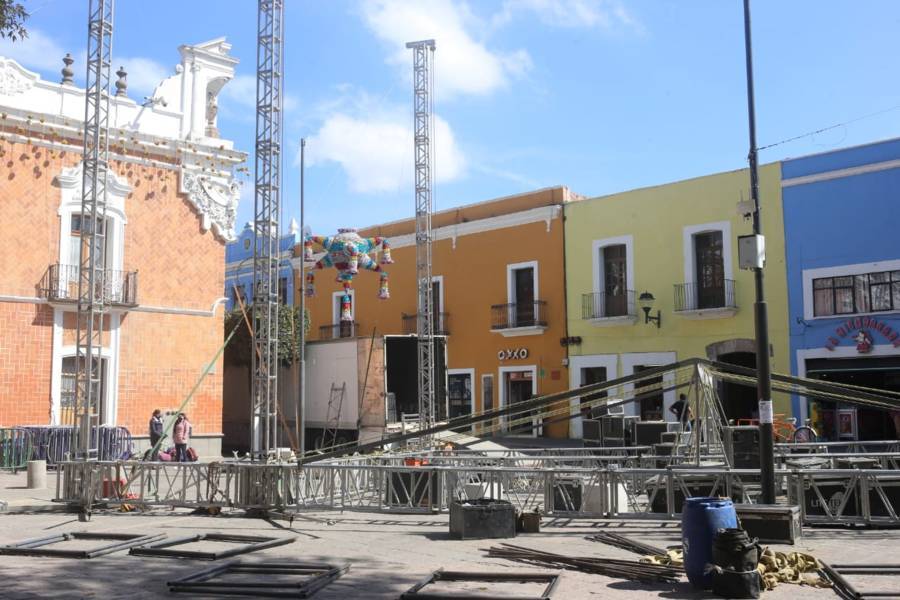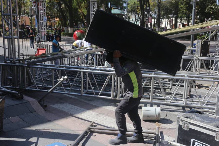 Tlaxcala. Tlax.21-diciembre-2022-Desde la mañana de este miércoles 21 de diciembre, las vialidades en el zócalo de Tlaxcala, permanecen cerradas con motivo de la Maxiposada. Cabe señalar que esta tarde en punto de las 18:00 horas se presentarán las agrupaciones musicales, La Apuesta, Alberto Pedraza, Junior Klan, entre otros.