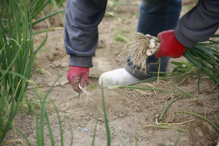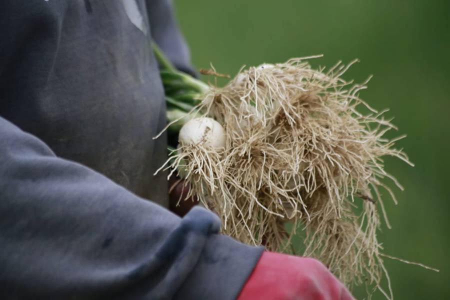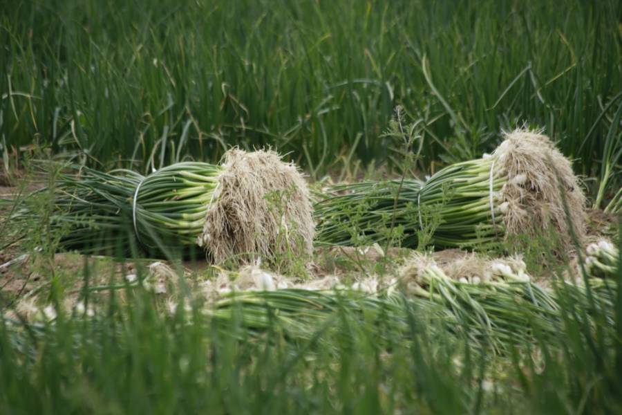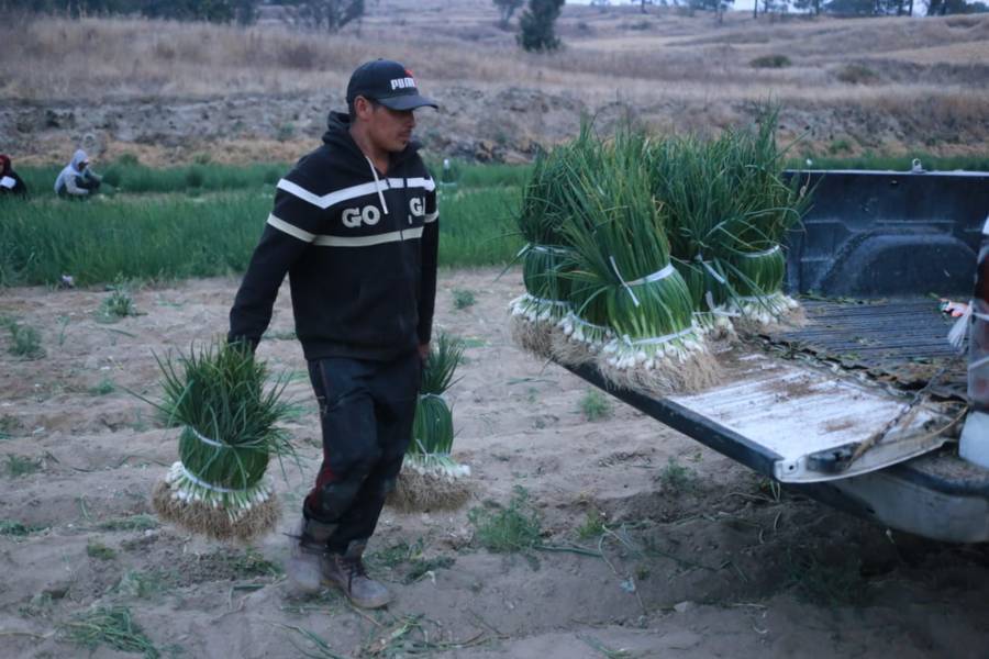 Nativitas. Tlax.- 01- Enero- 2023-La comunidad de San José Atoyatenco, famosa por sus deliciosas carpas, también es tierra de campesinos y productores que día a día trabajan de sol a sol para llevar el sustento a sus hogares. En este caso y para iniciar el año, realizaron la cosecha de cebollitas cambray, las cuales son comercializadas en Tlaxcala, central de abastos de Puebla, CDMX y otros estados de la región. En los terrenos de labor los campesinos plantan cebollas, epazote, apio, entre otras hortalizas.