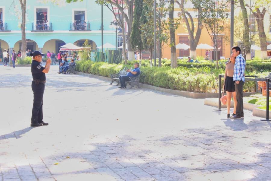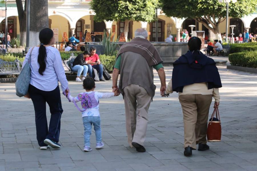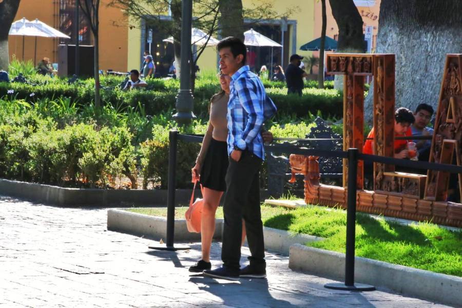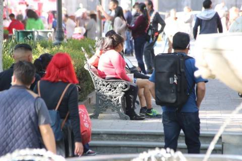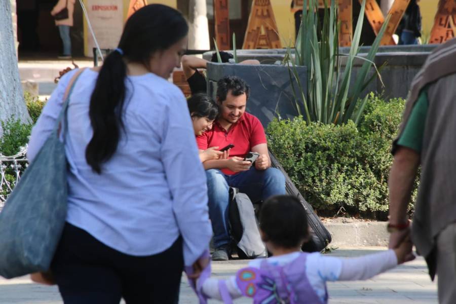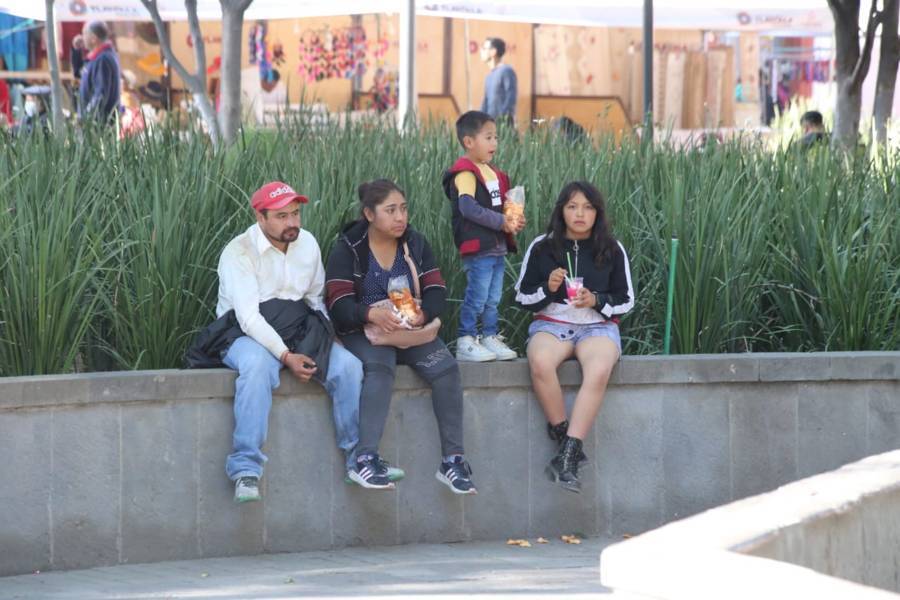 Tlaxcala. Tlax.22-enero-2023- Familias tlaxcaltecas disfrutan de esta tarde calurosa de 22 grados centígrados de domingo, en las inmediaciones del Parque Central de la ciudad de Tlaxcala.