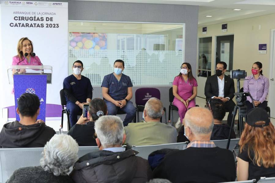 La gobernadora Lorena Cuéllar Cisneros encabezó el inició de la Primera Jornada de Cirugía de Cataratas 2023, a realizarse del 10 al 20 de abril en el Complejo de Atención Especializada en Salud y Bienestar (Caesb), ubicado en Tepetomatitlán, municipio de Apetatitlán.