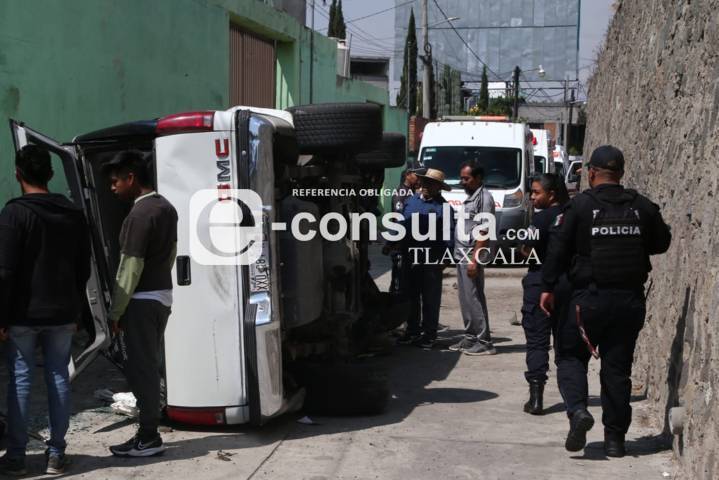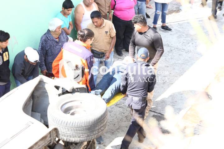Totolac,Tlax.24-abril-2023- Esta mañana una familia resultó lesionada después de que la unidad donde viajaban volcara en la zona conocida como "El Trébol" y terminar a un costado de esta importante vía de comunicación, por lo cual al sitio arribaron diferentes equipos de rescate para brindarle las atenciones necesarias y trasladarlas a un hospital.