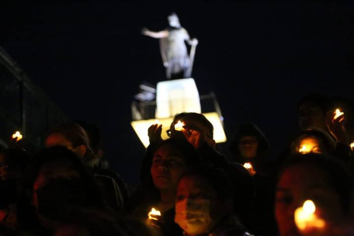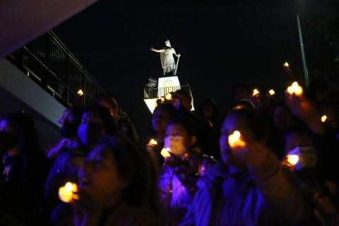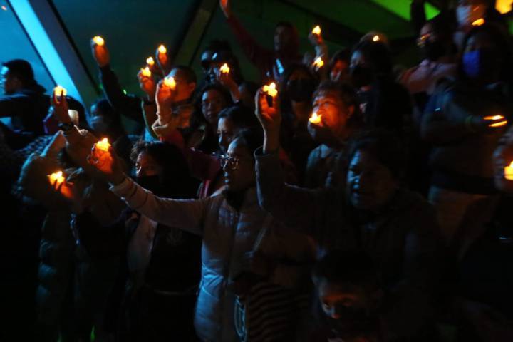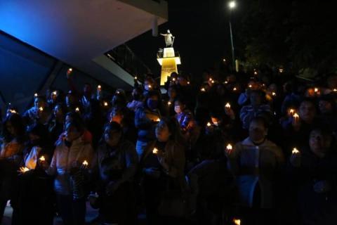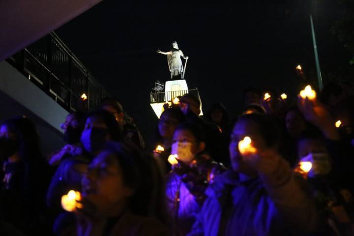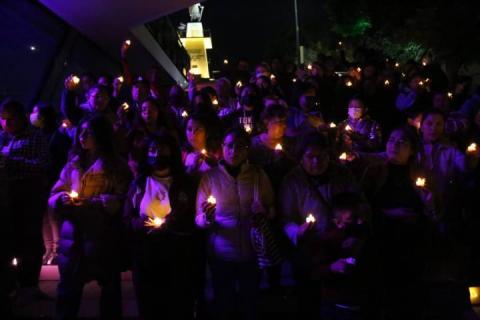 Tlaxcala,Tlax.12-mayo-2023-Esta tarde de viernes, en las escalinatas de los héroes de Tlaxcala, integrantes de Fuerza por México y sociedad civil, encendieron velas en apoyo y solidaridad, a las mujeres que buscan a sus hijos desaparecidos.