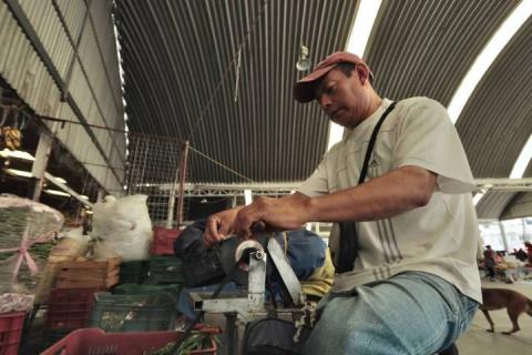 Zacatelco, Tlax.-21-junio-2023. Prudencio Leal, es afilador de oficio desde hace aproximadamente 34 años, actividad que le ha permitido llevar el sustento a su familia.