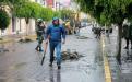 Tras la fuerte lluvia, el Ejército mexicano participó en las labores de limpieza en las principales calles del centro histórico.
