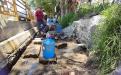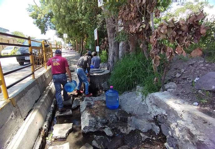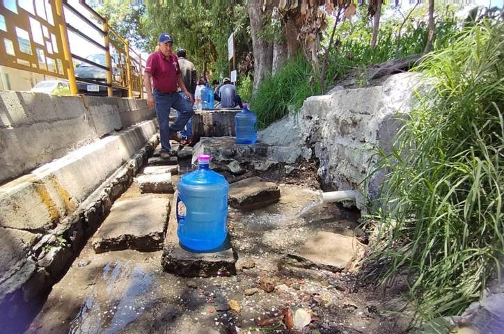Zacatelco,Tlaxcala.20-Julio-2023.En la zona de manantiales de Zacatelco, algunos vecinos aprovechan el brote del vital líquido para satisfacer las necesidades del hogar.