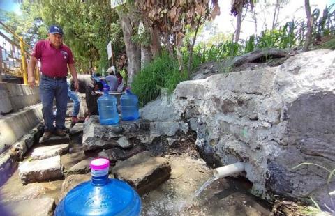 Ante la falta de agua en Zacatelco por tener un alcalde que no se preocupa de sus necesidades, vecinos de la localidad aprovecharon el agua que brotaba de los manantiales.