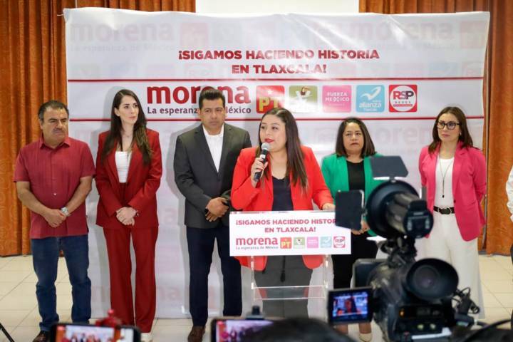 Tlaxcala, Tlax. 04 de marzo de 2024.En conferencia de prensa ofrecida por las dirigencias de MORENA, PT, Partido Verde, Nueva Alianza, Fuerza x México y RSP; esta mañana informaron que después de un proceso de diálogo, las dirigencias estatales de los partidos mencionados, acordaron suscribir un convenio de candidatura común, el cual contempla 11 de los 15 distritos locales.