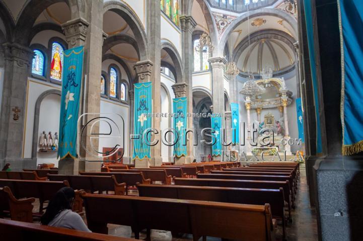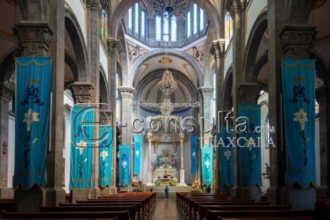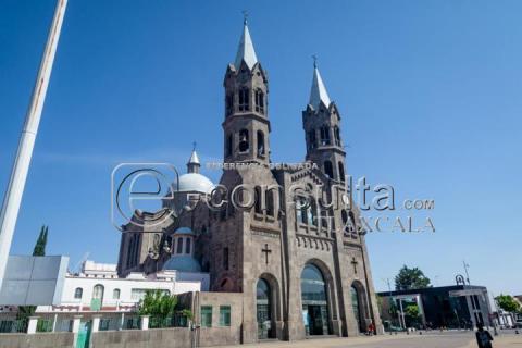 Apizaco, Tlax. 27 de Mayo 2024. En Apizaco se encuentra la basílica de nuestra señora de la Misericordia, la fiesta patronal se celebra el 12 de mayo, día de la Virgen con el mismo nombre. Este templo de estilo gótico romano, construido con piedra labrada, es una iglesia de dimensiones modestas y diseño sencillo. Tiene amplios ventanales que lo inundan de luz, su piso de baldosas pulidas de Santo Tomás.