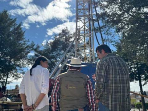 Pedro Misael Albornoz Góngora, director de la Conagua en Tlaxcala y la presidenta municipal de Tlaxco, Diana Torrejón, realizaron la inspección de los avances en la perforación del nuevo pozo de agua potable en la comunidad de Atotonilco, que abastecerá a más de 4 mil 500 personas.