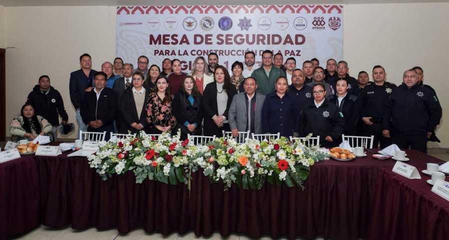 El presidente de Apizaco, Javier Rivera Bonilla, junto a la Coordinadora de la Mesa de Seguridad para la Construcción de Paz Región 1 Apizaco, la Mtra. Eugenia Magdalena Brindis Cárdenas, presidentes municipales, representantes de instituciones del Centro Nacional de Inteligencia, SEDENA, Guardia Nacional, Fiscalía General de Justicia del Estado, Secretaría de Bienestar, Secretaría de Gobierno, delegados estatales y comisarios de Seguridad Pública, presidió la primera sesión de la Mesa de Seguridad, un espacio de diálogo que permitió fortalecer la seguridad, bienestar y la tranquilidad de los municipios que conforman la Región 1.