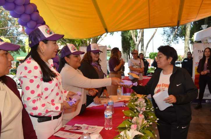 Los stand informativos brindaron información a funcionarias municipales, ciudadanas y alumnas del Colegio de Estudios Científicos y Tecnológicos (Cecyte) No. 16 y la Telesecundaria “15 de septiembre” de La Magdalena Tlaltelulco.