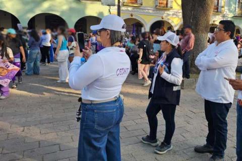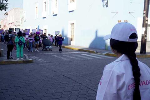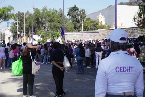 La presidenta de la Comisión Estatal de Derechos Humanos de Tlaxcala (CEDH), Jakqueline Ordoñez Brasdefer, informó que durante la marcha y manifestación efectuada este 8 de marzo, en la que participaron mujeres, colectivas, familiares de víctimas y la sociedad en general, defensoras y defensores del organismo observaron el actuar de las autoridades conforme lo establece el Protocolo de actuación policial para la seguridad y atención de manifestaciones en pro de los derechos de las personas para el