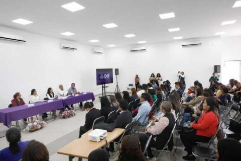 Acompañada de la directora general del organismo, Flor López Hinojosa, la presidenta honorífica del Sedif agregó que las y los titulares de los Sistemas Municipales DIF “son esenciales para cambiar de raíz el concepto que tenemos de la alimentación de nuestras niñas y niños, desde su labor con las directivos de las escuelas, con las mamás y papás de familia, así como con las y los encargados de las cooperativas escolares para transitar a desayunadores escolares modalidad caliente y para mejorar la oferta de alimentos con alta calidad nutricia a las infancias”.