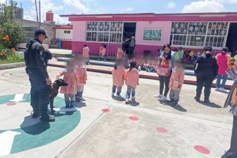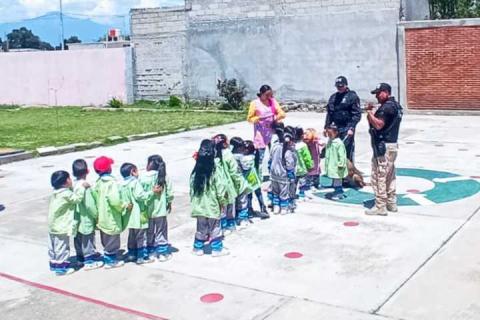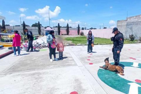 Para fortalecer los lazos de confianza con la niñez, elementos de la Policía Municipal de Huamantla llevaron a cabo una demostración canina en el Jardín de Niños “Octavio Paz”, ubicado en la comunidad de San José Xicoténcatl.
