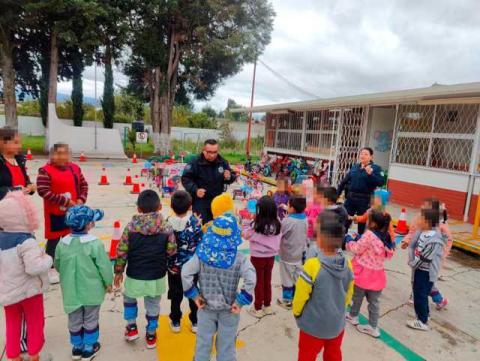 En esta ocasión, se impartió una plática a alumnas y alumnos del Jardín de Niños Gregorio Torres Quintero bajo la temática Circuito Vial, donde las niñas y niños aprendieron de manera lúdica las señales básicas de tránsito, el funcionamiento del semáforo y la forma correcta de cruzar las calles.