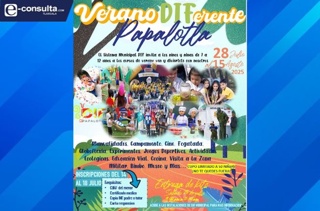 El Sistema Municipal DIF de Papalotla anunció la apertura de inscripciones para su curso "Verano DIFerente Papalotla", dirigidos a niños y niñas de 7 a 12 años de edad.