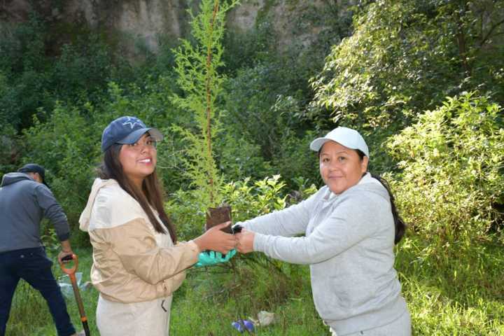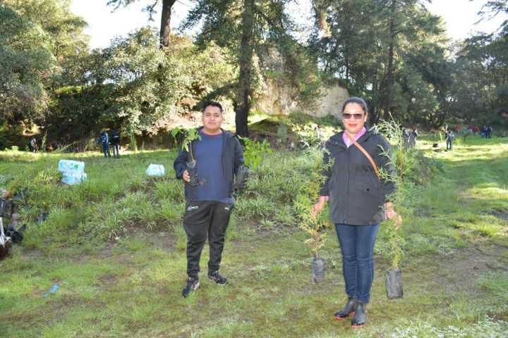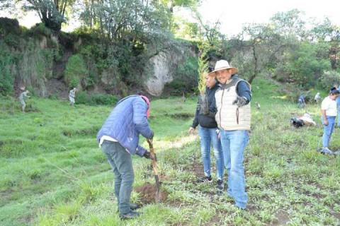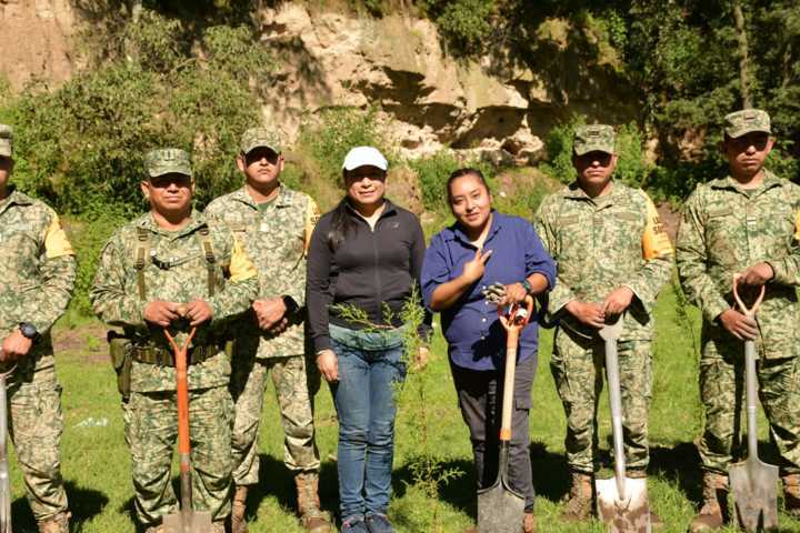 Con el objetivo de recuperar espacios verdes y evitar la erosión de barrancas comunales, personal administrativo del Gobierno Municipal de La Magdalena Tlaltelulco, Regidores, Delegados y Elementos de la 23 Zona Militar, así como del Pentatlón Deportivo Militarizado Universitario plantaron mil 100 árboles de Fresno y Cedro Blanco en la barranca de Calnáhuac.