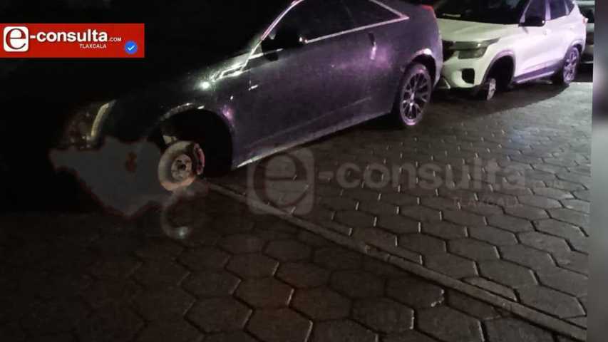 Los vehículos afectados, un sedán Cadillac y una camioneta Kia Seltos, quedaron montados sobre bloques tras ser despojados de sus neumáticos.